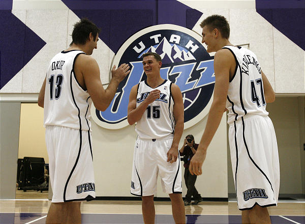 對了,附帶一提,除了上季頂到小前鋒的Kirilenko、以及本季開始練小前鋒球路的Millsap以外,在前一陣子Kirilenko放話離隊鬧得最兇的那段時間,還傳出了Sloan教練與控衛Deron討論將Kirilenko放回大前鋒、而讓中鋒Okur改打小前鋒的耳語。 不過這個話題在訓練營以及熱身賽開打後、大家明顯看到Okur還是穩穩地在長人組打他的中鋒,於是就不了了之矣。 總而言之現在全爵士隊的大前鋒當中除了Boozer以外,真的是所有人都被這個「轉組」的颱風尾掃到過,雖然不至於是「避之唯恐不及」啦,但是某種程度上「人人自危」倒也不算誇張。