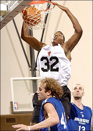 對了附帶一提,2006年選秀前夕,據說握有狀元籤的暴龍隊曾經認真考慮過要選取Tyrus Thomas。