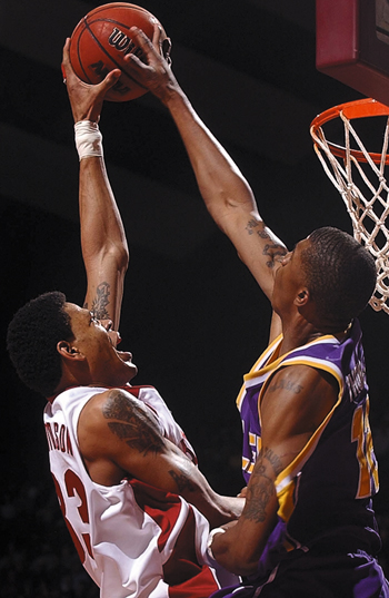 那場比賽普維斯敦大學的聯防陣型令「伊利諾後場三重奏」是灰頭土臉,Deron全場投8只中1,他的好朋友、也打過爵士隊一年的Dee Brown也只有投9中2。